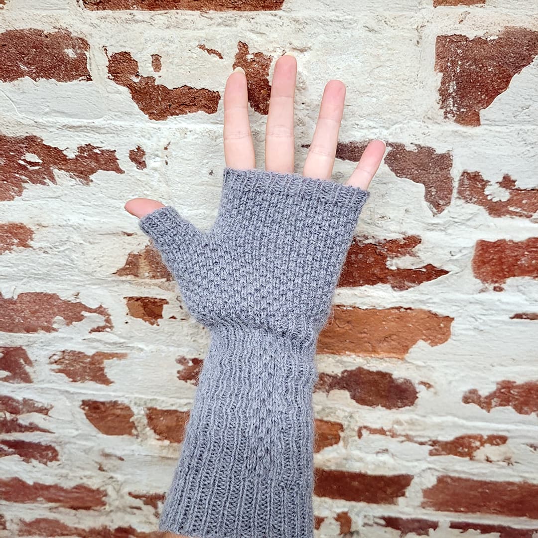 Experience alpaca fiber's natural warmth and softness with our new fingerless wrist warmers, crafted with care in the USA from U.S.-grown alpaca fiber. These gloves are designed to keep your hands comfortable and cozy, with a seamless construction that ensures a smooth, no-bulk fit. Thanks to their reversible design, you can easily flip them inside out for a fresh look, giving you two style options in one.