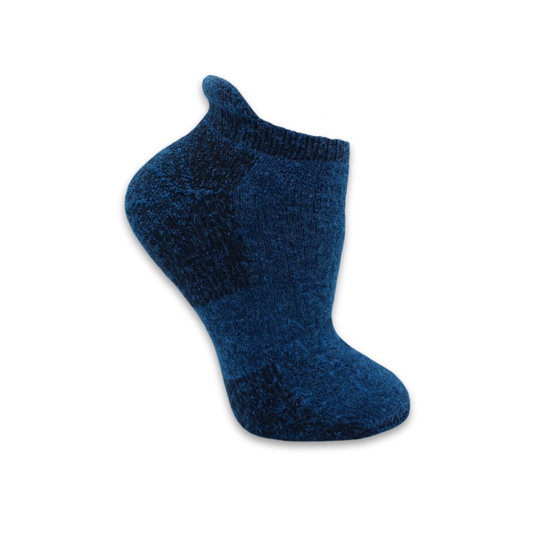 This low profile design has alpaca terry loops through the entire sock for cushion, comfort, and maximum moisture wicking. There is a heel tab to keep the sock in place and prevent rubbing. The arch band wraps around the entire sock for a proper fit and the heel and toe have been reinforced with nylon for increased durability. Hypo-allergenic, un-dyed, and naturally odor-resistant.